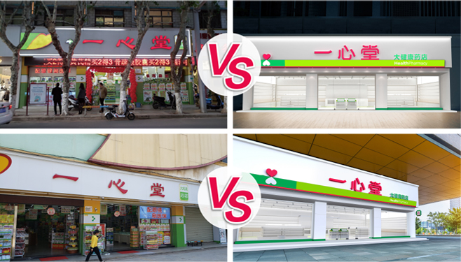 ▲ 一心堂藥店新舊門頭效果對比