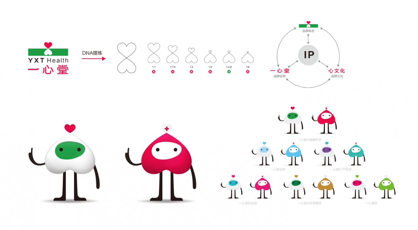 一心堂集團IP打造IP創(chuàng)意取自品牌原始基因“天地之心”,在IP的規(guī)劃上運用了一以貫之的品牌指導思想。以一心堂名字“一一和心心”為導向命名IP,使IP與品牌標志、名稱、心文化產(chǎn)生強關(guān)聯(lián),簡單、直接,增強品牌記憶,降低傳播成本。同時IP在運營的過程中不斷累積品牌資產(chǎn),反向賦能品牌,實現(xiàn)品牌與IP能量互動的集合效應,引爆業(yè)態(tài)發(fā)展。