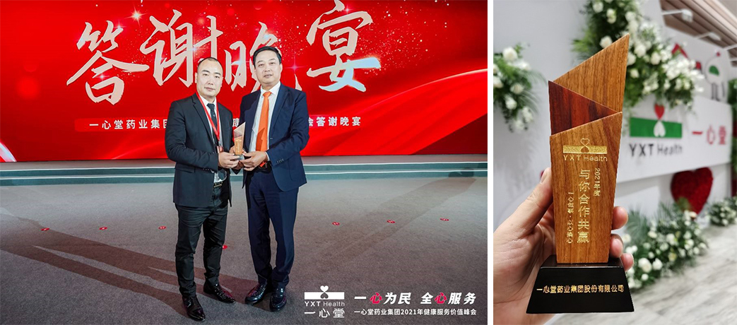 會場晚宴的頒獎環(huán)節(jié),董事長阮鴻獻先生親自為李華清團隊頒發(fā)了“與你合作共贏”獎杯,這是近一年來一心堂集團對李華清團隊的最大肯定和鼓勵。同時,也為我們雙方開啟第二階段工作提供了堅定的信心。