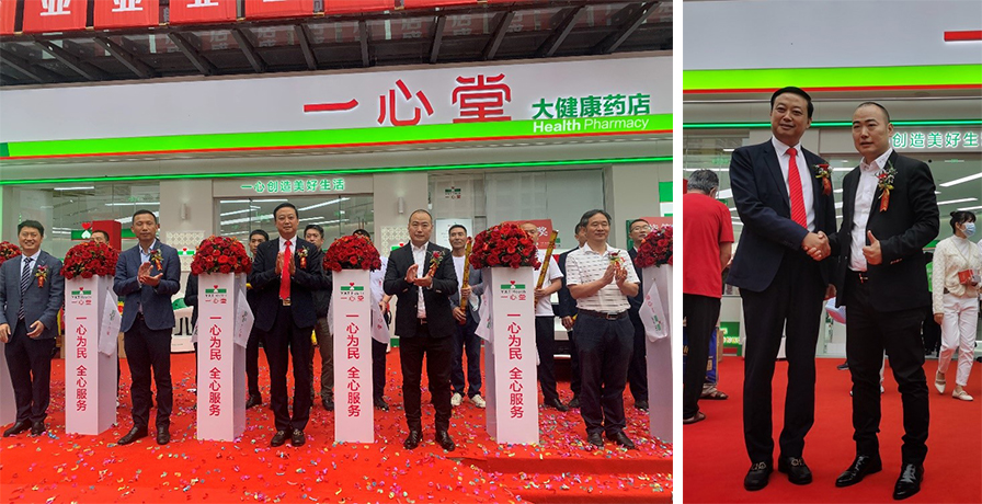 2022年9月23日一心堂全新品牌旗艦店亮相昆明,阮鴻獻董事長與李華清董事長共同為新店剪彩